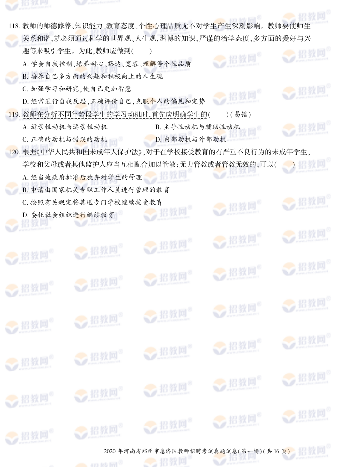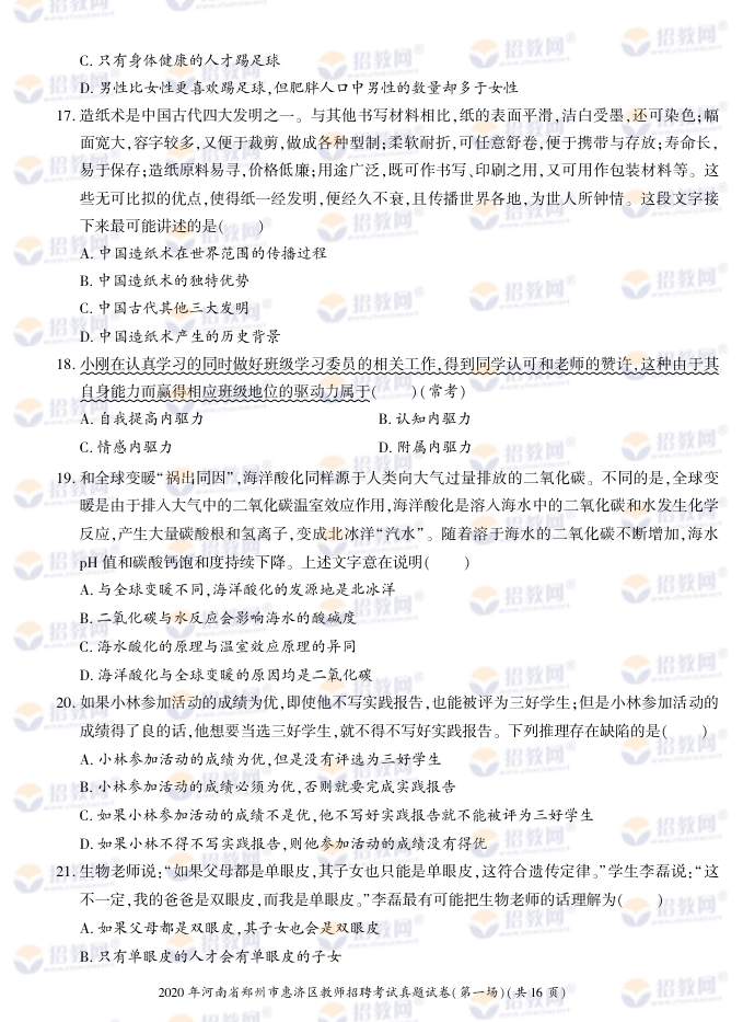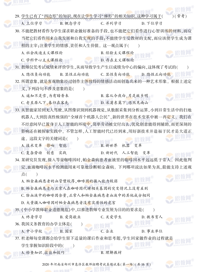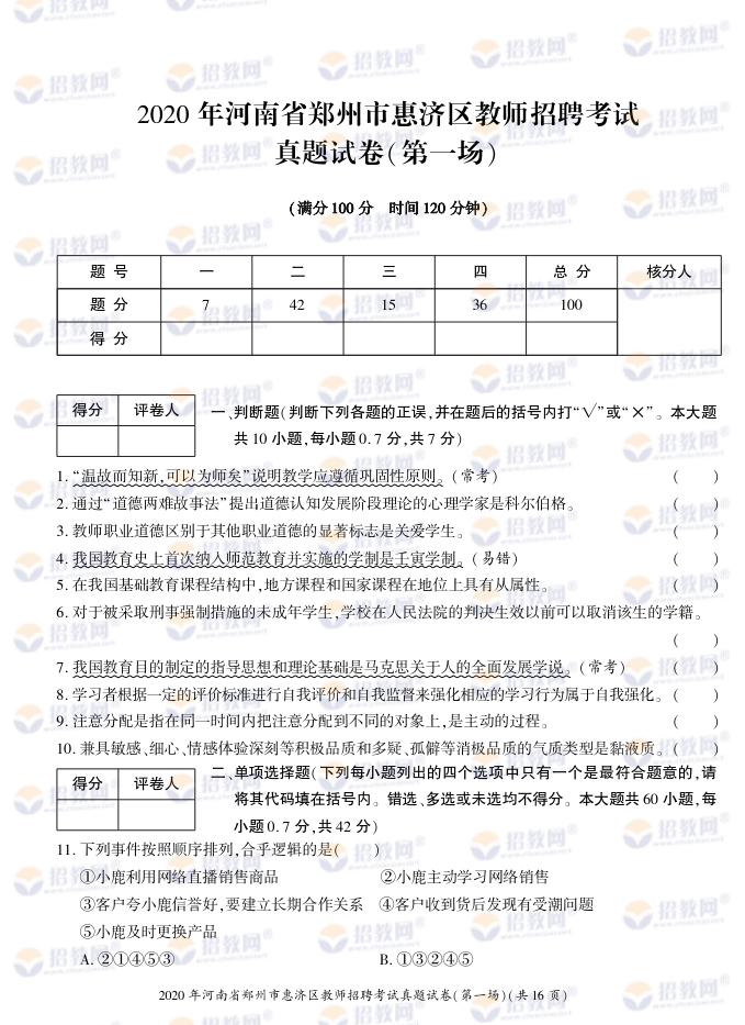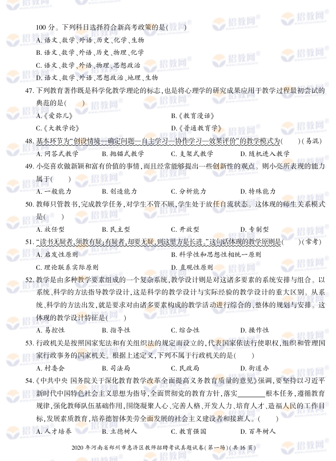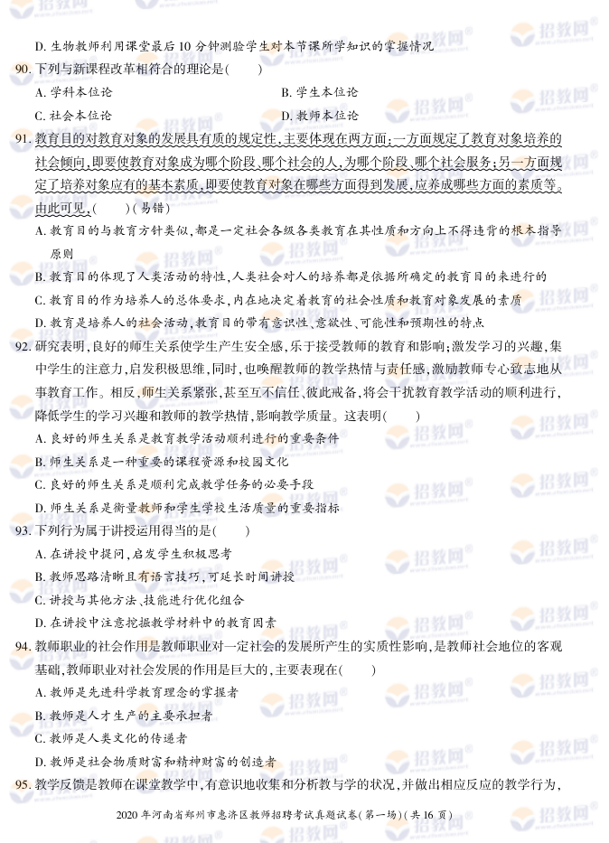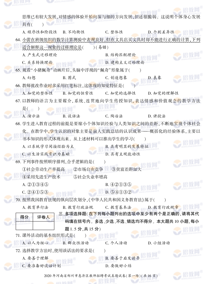 2020年河南省郑州市惠济区教师招聘考试试题试卷及答案解析-德扑圈联系微信