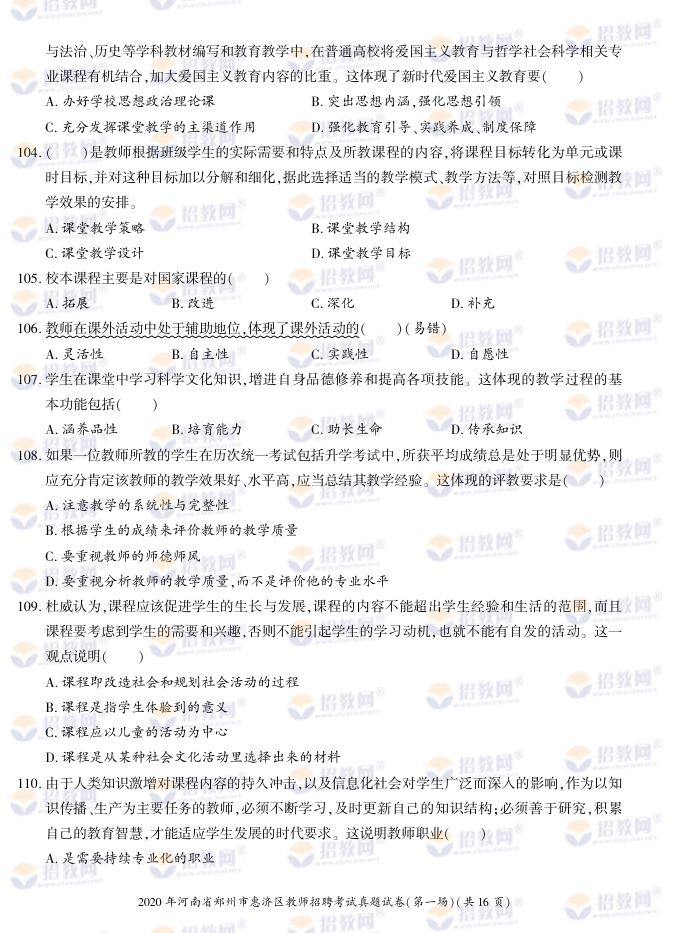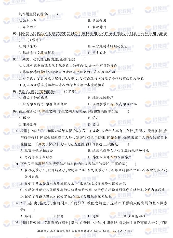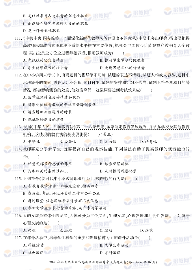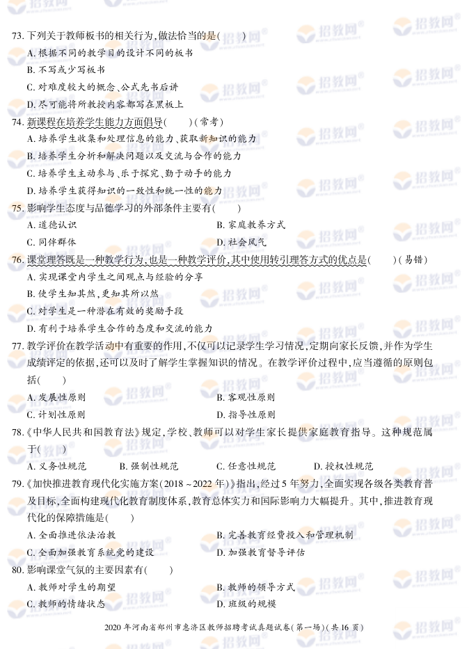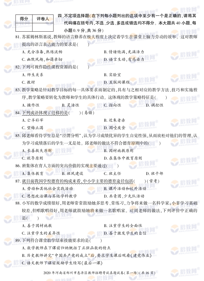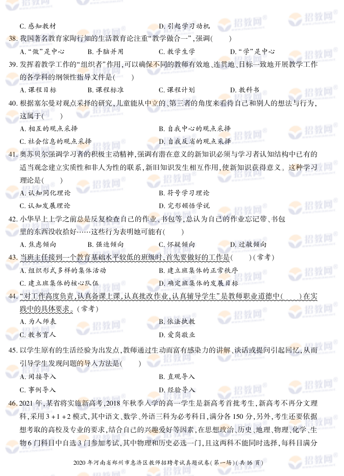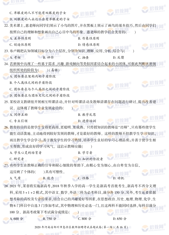 2020年河南省郑州市惠济区教师招聘考试试题试卷及答案解析-德扑圈联系微信