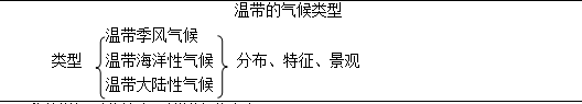 学生通过观察“世界气候类型分布图”得出主要有:温带季风气候、温带海洋气候、温带大陆性气候。