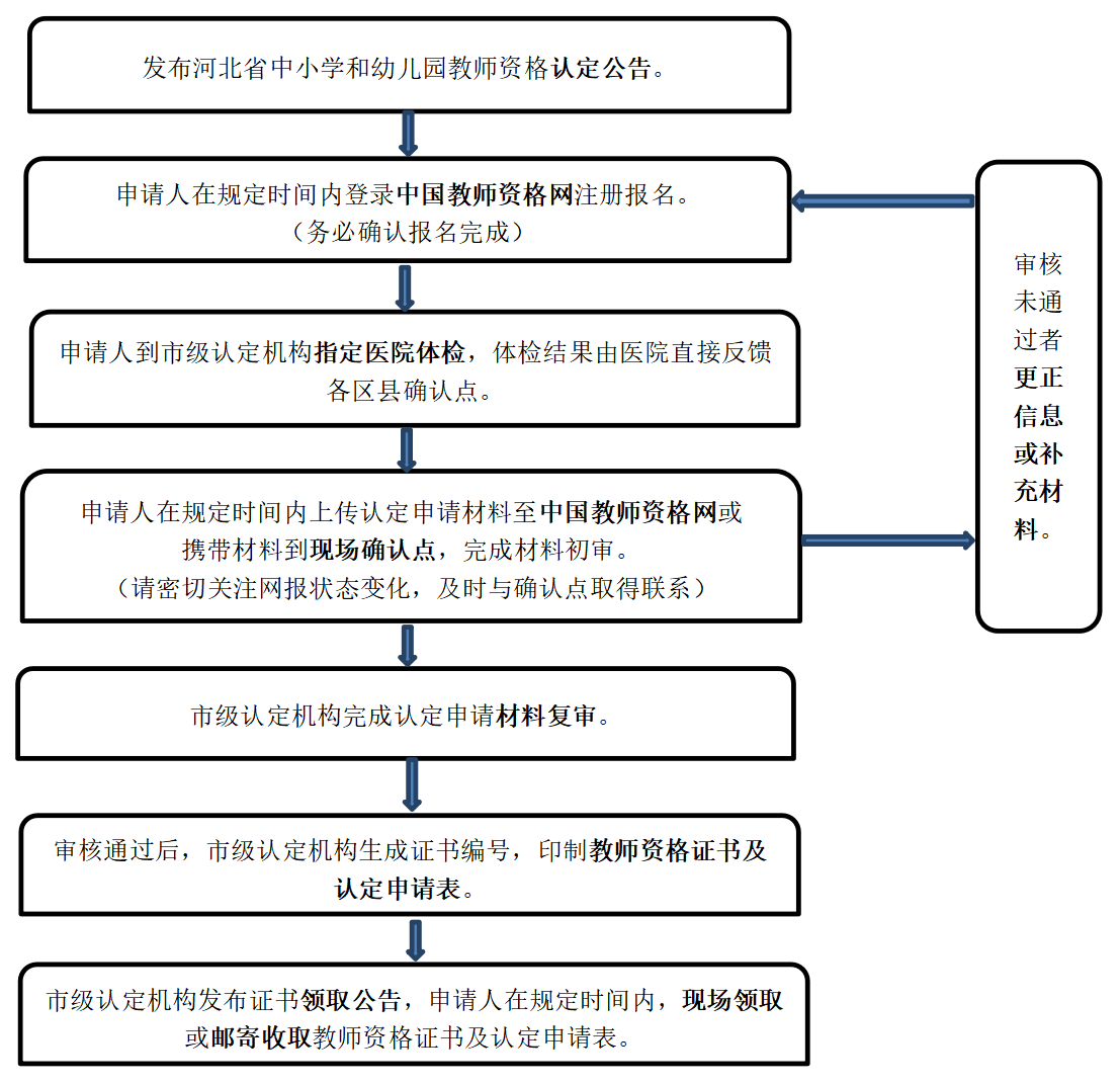 申请人在完成网报后,持贴有与本次认定网报同版照片的《河北省教师资格申请人员体检表》在规定时间内到本市教师资格认定机构指定医院体检。体检医院及时间安排等相关信息,请在本市认定机构德扑圈联系微信官网或微信公众号发布的认定公告中查看。申请人需按照所申请的教师资格种类在本《公告》附件中下载相应体检表,并用a4纸双面打印。